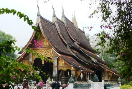 そんな列が通った脇のオープンテラスでハイセンスな朝食を楽しみ、予約してあった送迎ミニバスでルアンパバーンの観光へ出る。この町は1353年にファーグム王によって首都とされ、ラーンサーン王国の中心として栄えた。その後も王朝の象徴として、1975年の建国まで王宮が置かれた。そして、市街地全体が1995年に世界文化遺産として登録された。