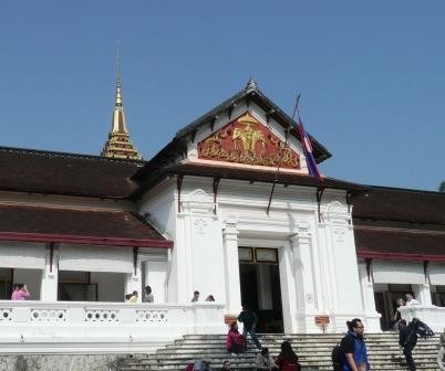 次は、かつての王宮だった建物を利用した国立博物館へ行く。無血革命とは云え、1975年のパテトラオ(現政権)がルアンパバーンを掌握すると、王族は北部に送られた。その王宮は博物館として開放された。博物館の内部は王の執務や接見の部屋など靴を脱いで見学する。