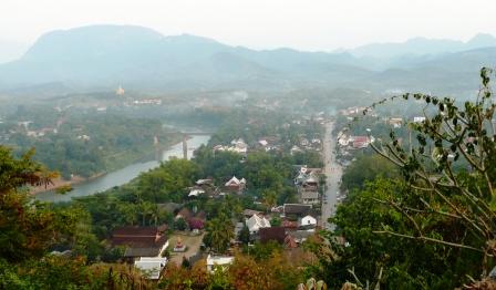 プーシー山よりナムカーン川とルアンバパーンの町
