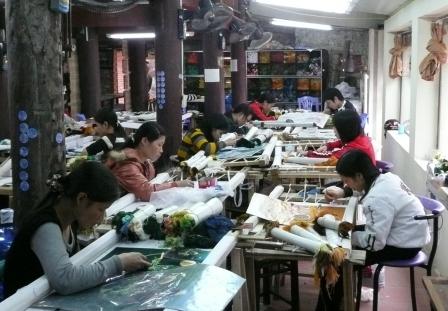 途中のトイレ休憩は観光客相手の土産物店だ。大規模な店でベトナムの土産は何でも取り扱っている。数十人の刺繍の針子が店内売場で作業を客に見せている。聞けば、北爆時の不発弾による事故障害者や、戦争孤児たちが篤志家の雇用でこうした職に付けているとの事だった。