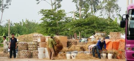 冬日向ジャンクの舟で太極拳 藁包むバッチャン村の丸火鉢