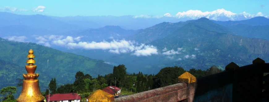 寺の階上からは、目の前に軍の施設、次いで、カリンポン市街、そして、ヒマラヤ山脈と広大な景観を楽しめた。