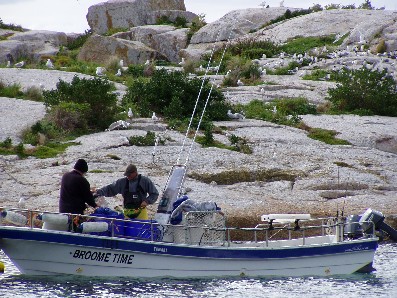 旅の終盤である。翌朝、タスマニア島東海岸に沿って南下する。先ずは、Bichenoの磯へ行く。港では、をペンキで塗りなおしている1隻と海に2隻の漁船しか見えない。油での汚れなど全く無い海水。そして、岩に生えている昆布が寄せる波に揉まれている。Blow Hole(潮吹き穴)では波が打つ度に、岩礁の穴から空へ砕けたしぶきを上げている。