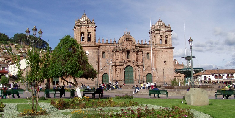 大聖堂の他にもアルマス広場にはラ・コンパーニャ・ヘス教会が立っている。これはインカ皇帝の宮殿を取り壊して建てたが、17世紀の大地震で崩壊して、1650年に建て替えられた。