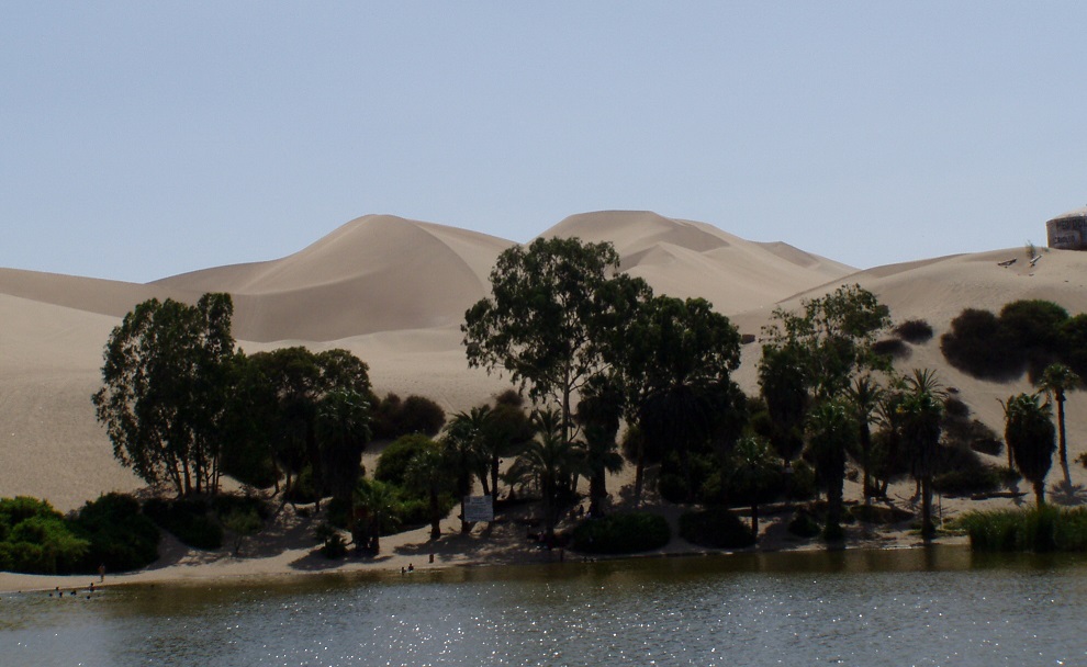イカからリマは砂漠地帯でその中を突っ切るハイウェーを帰る。時間帯と逆方向のためなのか、昨夜の渋滞は全く見られない。道中の半ばで、道沿いのオアシスに寄る。以前、水が涸れて機能しなくなったことがあり、それをJICAの援助で甦らせたと、リマからガイドをしている日系二世のオオイシ氏の説明。