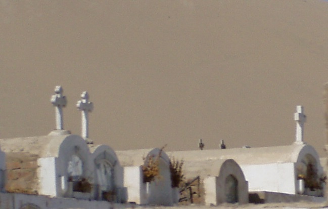 ミイラを葬る砂漠にならぶ墓石