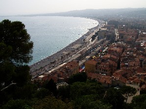 モナコからニースへ海沿いの道を西へ戻る。そしてニースの海岸を西に望む城跡に造られた展望台へ。そこからは緩やかな湾曲した長い海岸線とニースの旧市街が一望された。