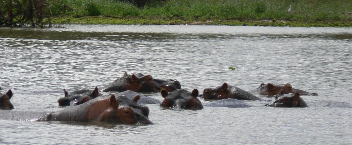 ボート・サファリでは河馬や鰐だけでなく、多くの鳥が観察できる。ペリカン、平嘴コウノトリ、鴫や鷺、それに、多くの小鳥が中州の木々に巣を掛けて賑やか。色彩も豊かな鳥達だった。