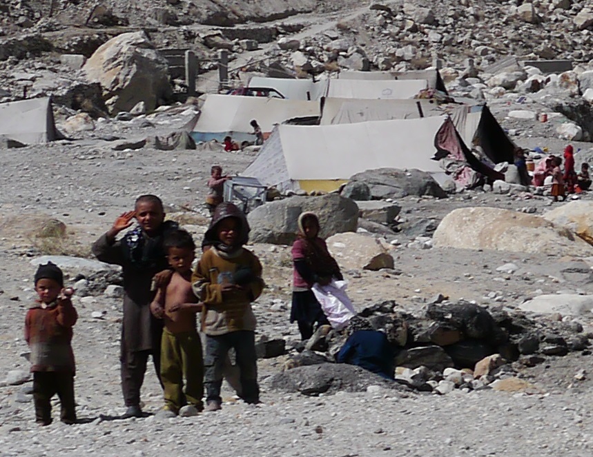 バルチット城から、フンザ川の対岸にあるナガールへ行く。フンザ川を渡る川岸では砂金取りのテントが6〜7軒ほど張られていた。家族でいるのだろ、、幼い子供たちが貧しい服でわれわれに近づいてくる。学校も行ってないのだろう。他国からの難民なのだろうか?この地域の難しさと、貧しい一面を見た気がした。でも、決して物乞いはしない子供たちだった。