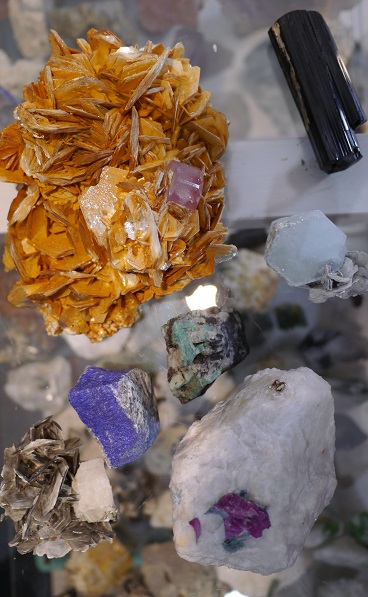 ラカポシ峰(7788m)を望むカフェ↑ シーア派の旗↑ 土産屋にて、右下がルビーの原石↑