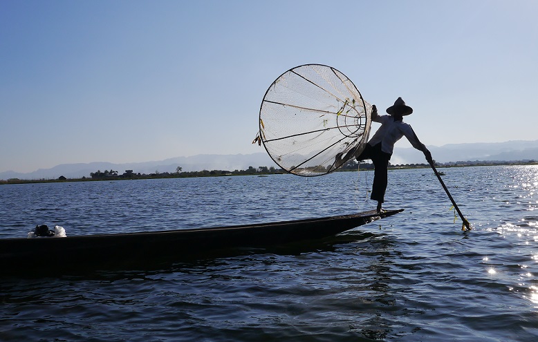 霧野萬地郎 撮影 ミャンマー・インレー湖にて 独特な伏せ網漁 と 首長族の仕事場にて