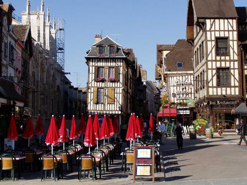 霧野萬地郎撮影:フランスはトロワの町の朝(木組の家が多い) ナポレオン街道からの景