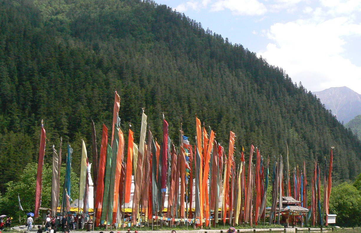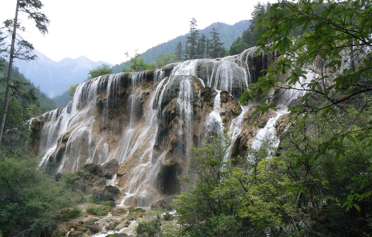 霧野萬地郎撮影:中国・四川省:九寨溝の珍珠瀑布 と チベット族の寨(さい)