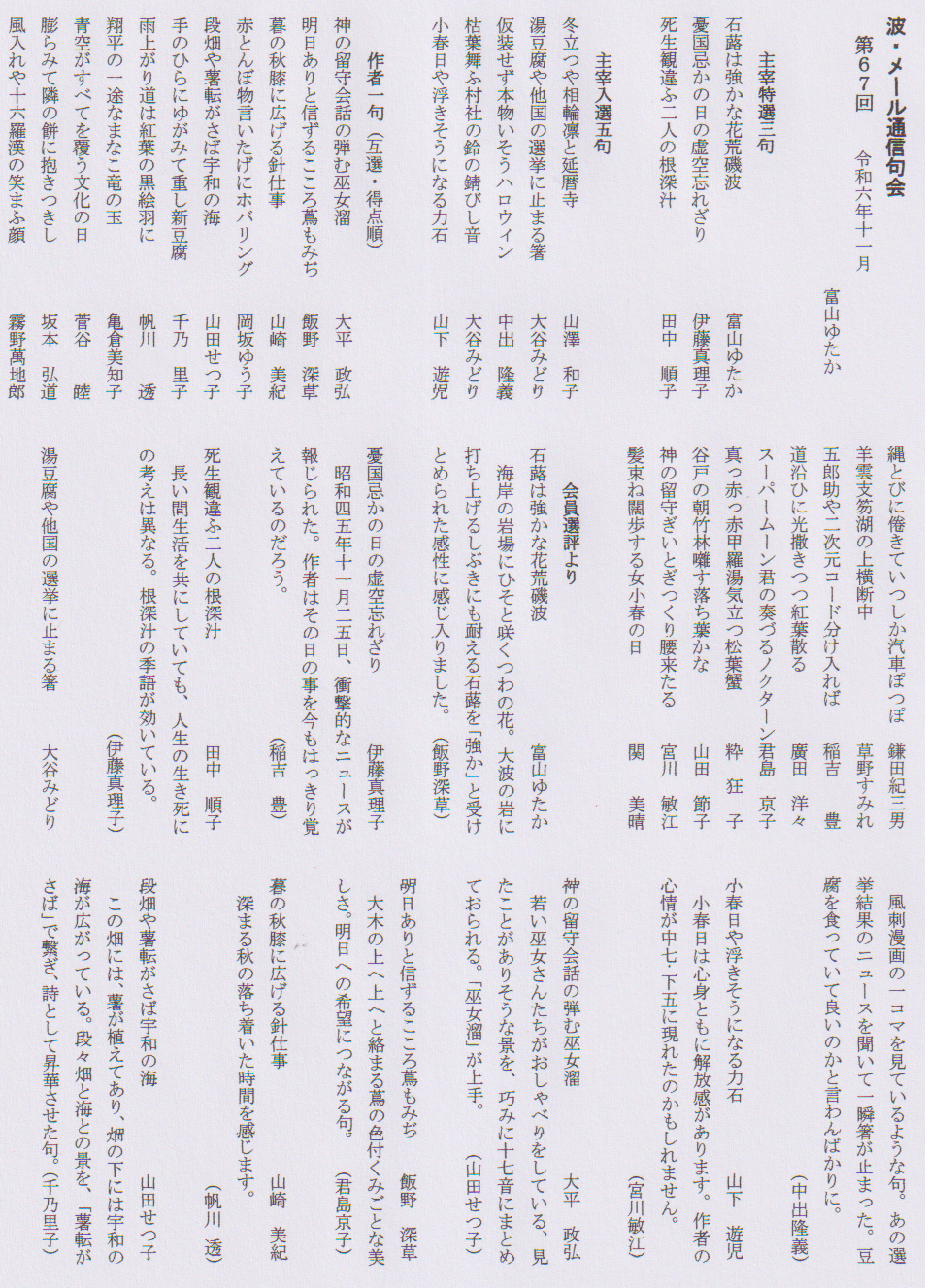 「波」のホームページ・トップへ 前月へ 次の月へ