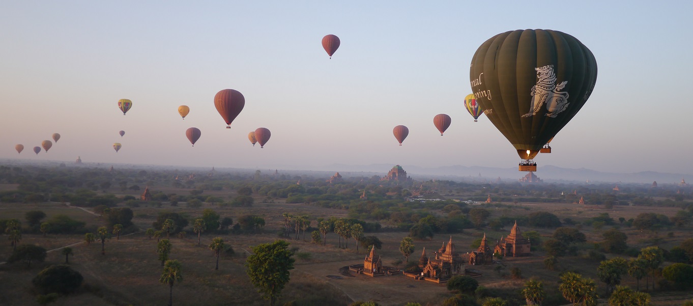 霧野萬地郎撮影:ミャンマー・バガンの仏教遺跡に浮く気球