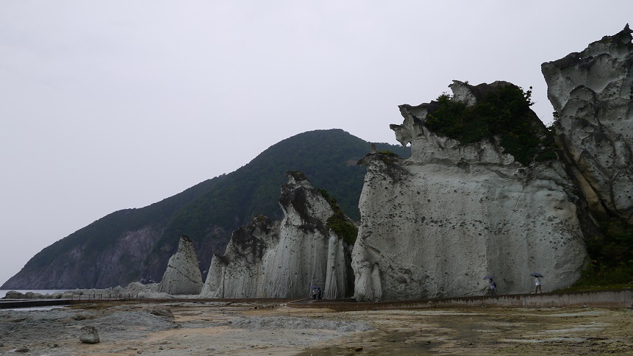 仏ヶ浦の白い巨大な奇岩群は2kmにわたって連なり、海からしか全貌を観る事が出来ない日本の秘境百選とも云われる絶景スポット。極楽浄土を思わせる神秘的な世界が広がっている。風雨と波によって削られた巨石群の圧倒的スケールは圧巻だ。ここへは歩いても行けるそうだが、標高差100mの急斜面を下る、そして、上るので、今は殆どの観光客はこの船を利用している。上陸してしばし仏ヶ浦を歩く。ここは霊場恐山からみて浄土がある方角とされる西側に位置する事から、死者があの世へ旅立つときも、また、この世へ戻って来るときにも立寄る所と云われた。それらの信仰の中心となる小さな地蔵堂が崖裾にある。