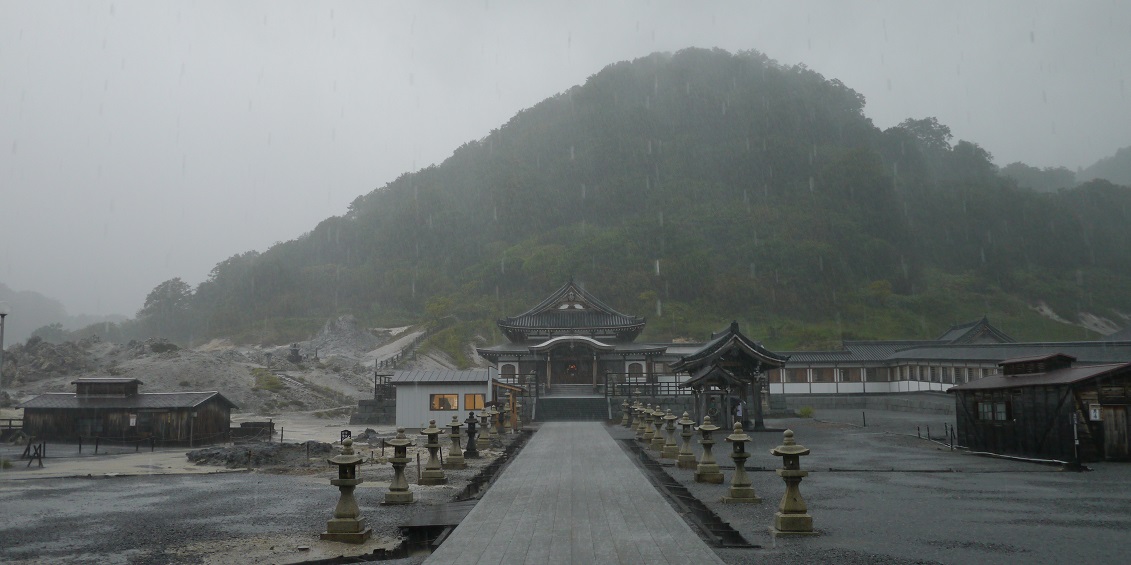 恐山では激しい線状降水帯の雨に出遭って、山門より地蔵殿を見るだけだった。