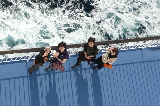救命艇吊るすデッキの日向ぼこ