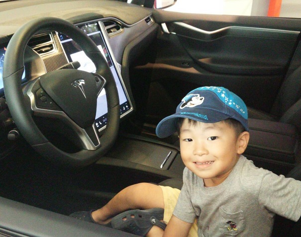 お食い初め↑とEVテスラにて↓