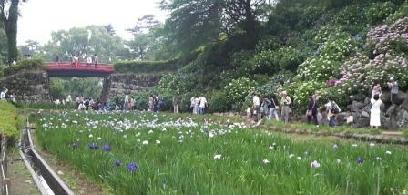 写真は上から:小田原城の菖蒲と紫陽花 奥湯河原・福泉寺にて・自宅の花火