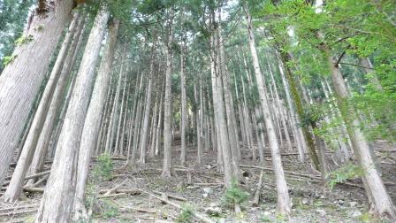 翌朝は二人だけで2時間ほどを歩く森林浴。間伐などの手入れが行き届いているのか、杉や檜の見事な林が朝日を受けて美しい。