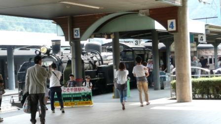 <アプト式鉄道の湖上駅・千頭駅の様子>