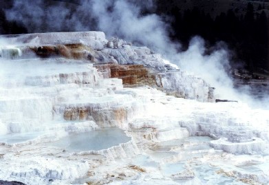 ここは世界最初の国立公園である。それだけに、公園内は自然保護のためにいろいろと厳しい規制がある。ホテルも少なく、また、電話なども途中にはない。自然が主人公として守られ、人間はあくまでも傍観者である。すばらしい景観と温泉の中、バイソン、ヘラジカなど数少なくなった動物が身近に見える。