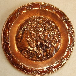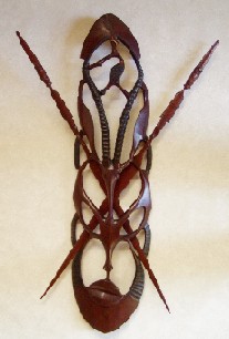 写真の右上はザンビアの面(縦80cm)、その下は珍しい魚釣りのデザインを施した飾り皿(直径30cm:銅はこの国の主要産品)